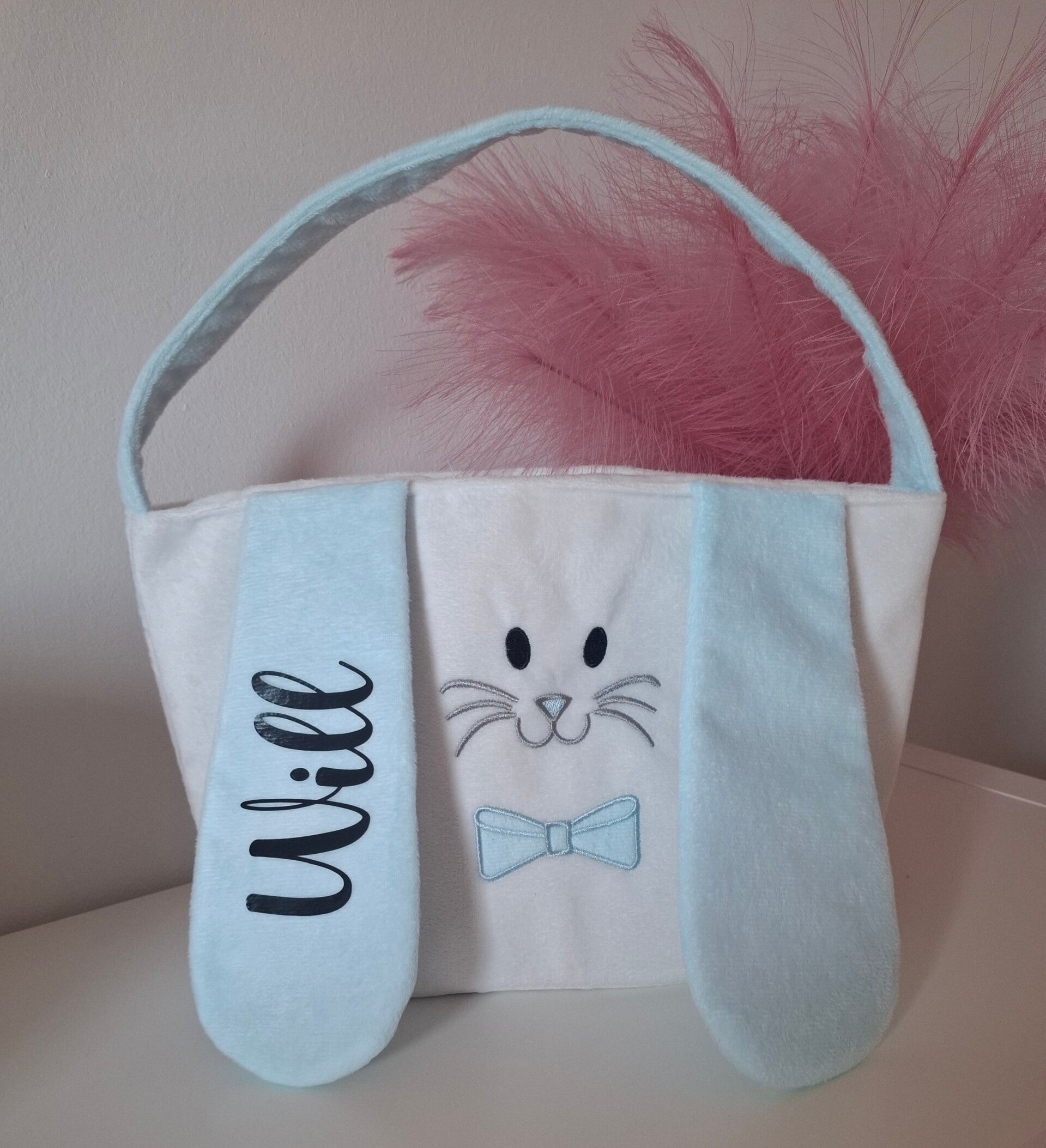 Maak pasen extra leuk met dit leuke schattige paastasje met naam. Het tasje is verkrijgbaar in 2 verschillende kleuren. Roze en Blauw.