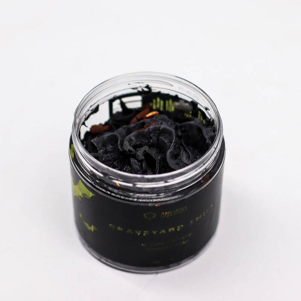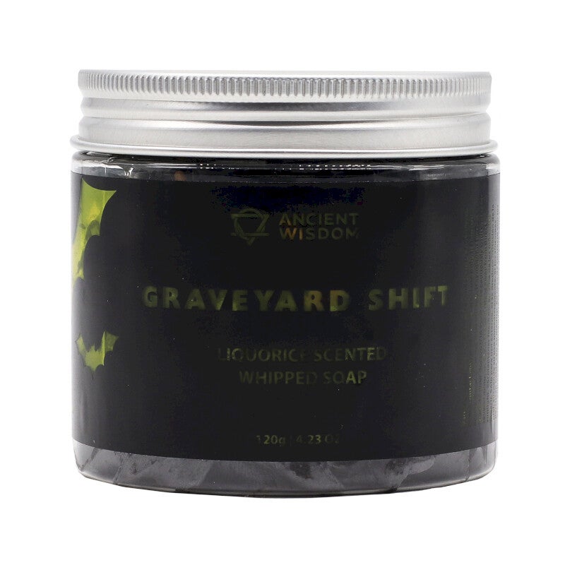 Graveyard – Opgeklopte Zeep biedt een donkere en gedurfde geurbeleving met een rijk fruitige mix. Deze opgeklopte zeep combineert pittige veenbes, sappige zwarte bes en levendige framboos, gelaagd over een gedurfde en intrigerende basis van drop en anijs. Het resultaat is een mysterieuze en meeslepende twist aan het badmoment, ideaal voor wie iets buitengewoons zoekt.